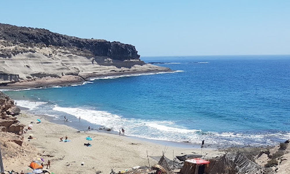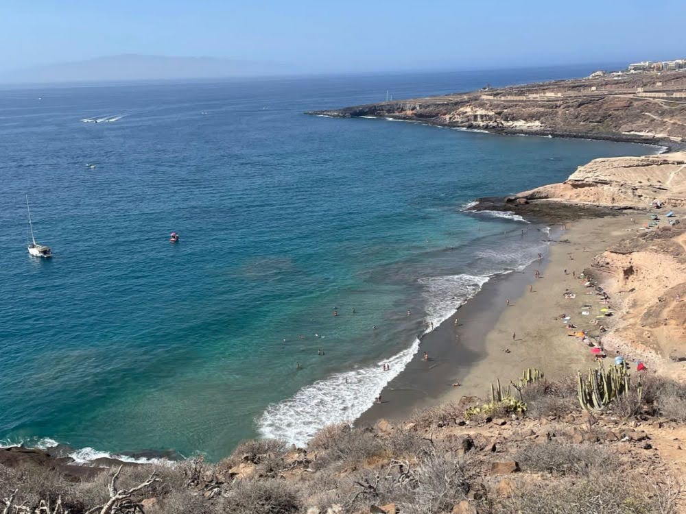 Llegar a la playa requiere al menos un cuarto de hora de caminata pasando por un pequeño barranco si vienes desde Costa Adeje.